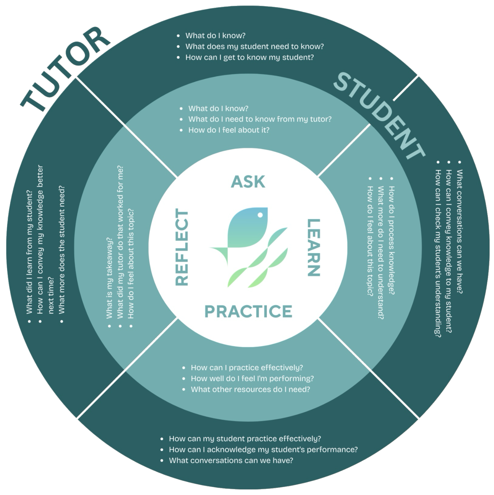 私たちはサイクル式の持続的学習および生徒とチューターが考慮すべきことを書き記した、 以下の国サバ学習パートナーシップモデルを使います。